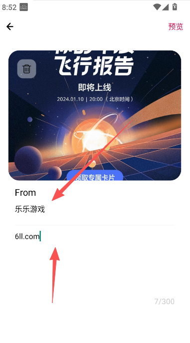 3、输入你的情书表达方名字以及内容部分,点击预览看是否满足你的实际需求。