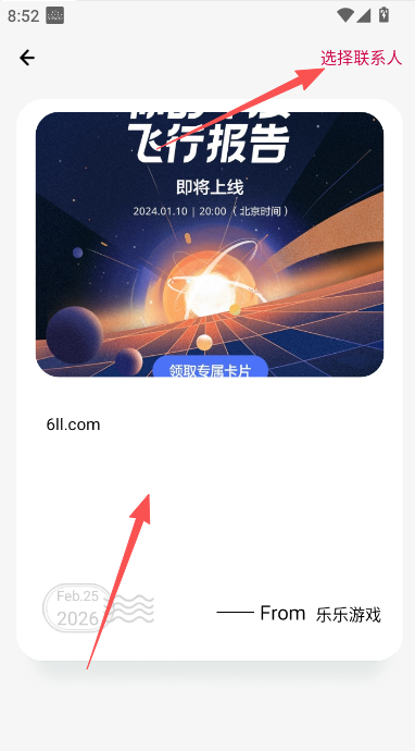 4、效果预览确认满意以后,点击选择联系人发送即可。