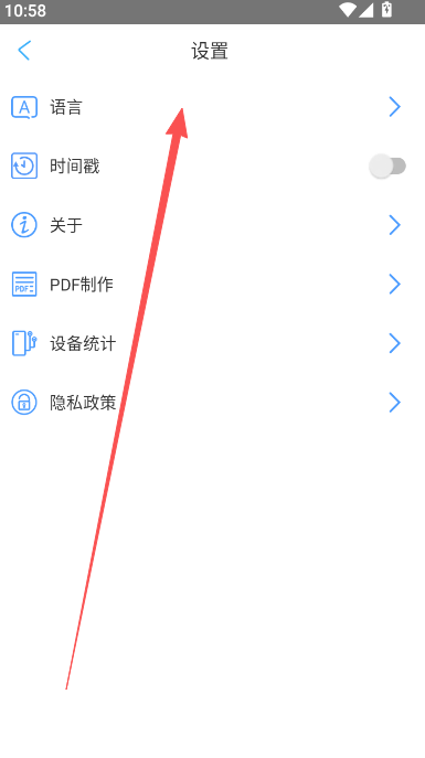 1、点击软件右上方的设置选项。