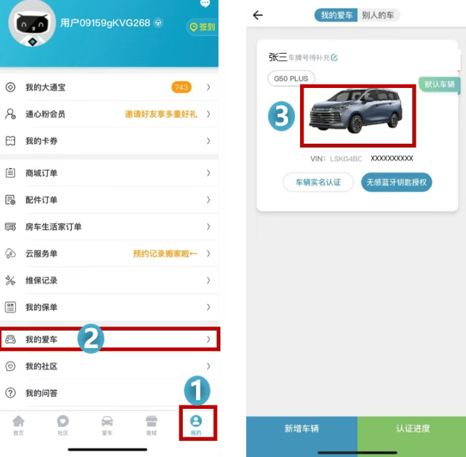 点击【我的】-【我的爱车页面】,再点击页面内的车型图(不同车型,显示图片不同)进到车辆详情页。