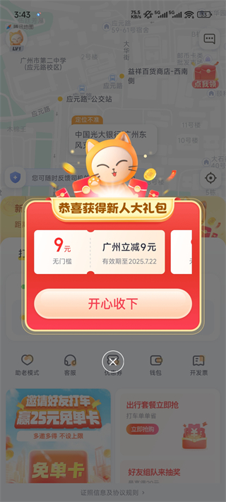 1、打开如祺出行App,新用户可以领取无门槛红包