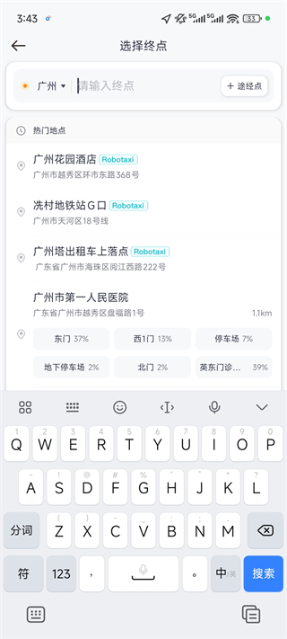 3、输入目的地
