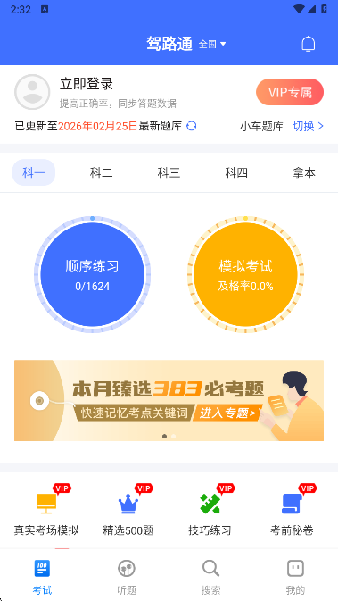 1、在本站下载安装驾路通app打开,进入后,来到首页考试页