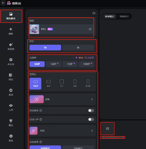 3.拍我AI有三个模型可选择,首尾帧可选择V4.5和3.5。