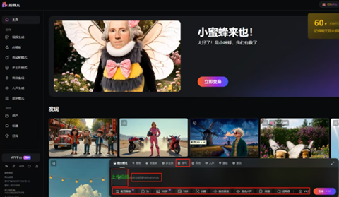 输入提示词、图片根据需要对视频的比例、时长、音效、人生风格等参数进行调整还有多样模板可供选择