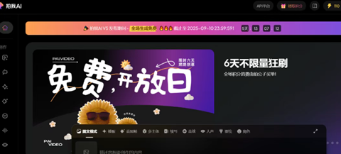 Pixverse AI推出最新V5视频生成模型,继国际版官网的免费活动之后,国内版拍我AI也免费开放,为期6天,不用积分,完全免费使用。