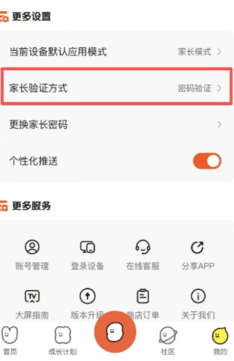 点击“我的”“家长验证方式”,就可以改成密码方式