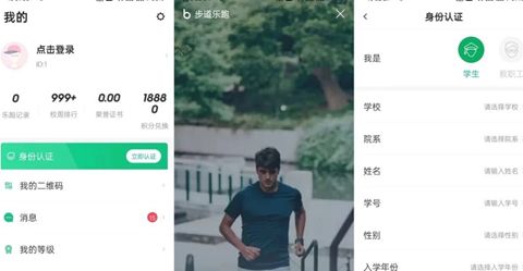 (1)登录“步道乐跑”,点击“我的”-“立即认证”进入身份认证界面
