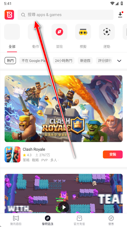 在搜索框中输入您想下载的海外应用或游戏名称(支持中英文输入)。