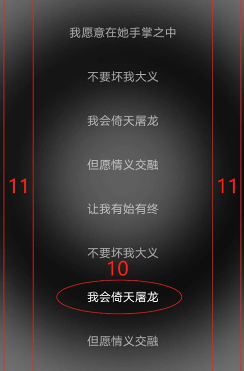 点击红色区域内任意位置都可查看歌词。