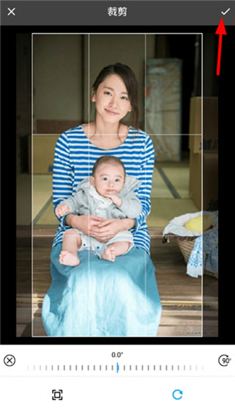 3、对图片大小进行裁剪,完成偶,点击右上角“勾”。