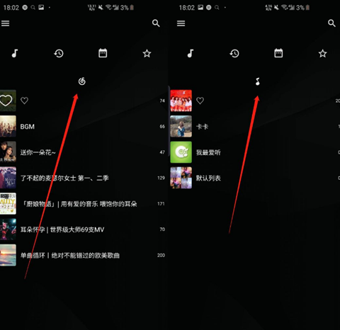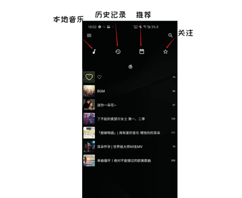 主要分为两个部分,上半部的功能键以及下半部的歌单列表。