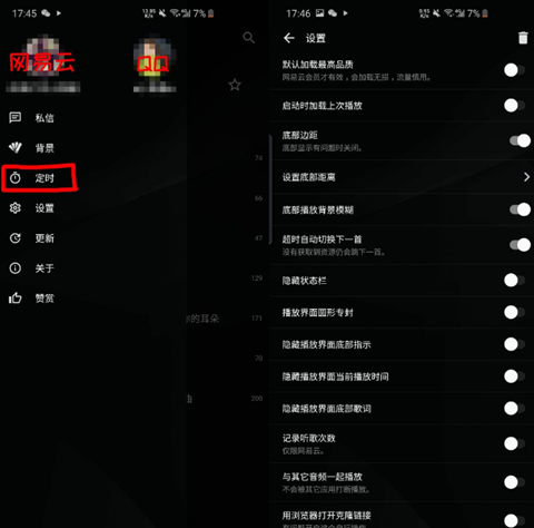 倒带支持同时登陆两个账号(一个网易云,一个QQ音乐)。
