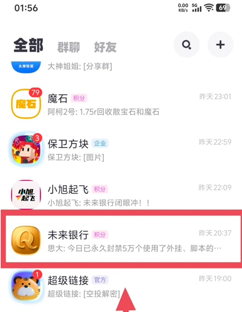 实名好后进未来银行的群,找你的推广人要进群口令,复制进群口令打开超级链接就会自动跳转进去了