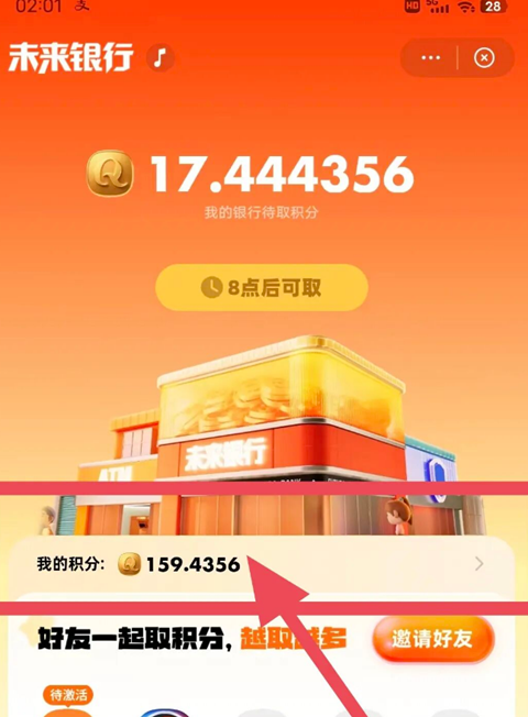 ②进入“未来银行”板块,完成“取积分”任务→