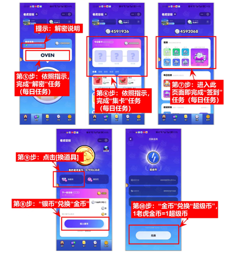 ①“银币”先换“金币”:当“银币”积累至2500万,投入2000万参与瓜分“老虎金币”,留500万做“集卡”任务→