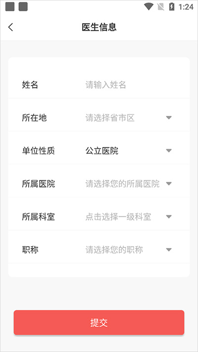然后在打开的新页面中填写医生信息进行提交,等平台审核后即可成功以医生身份登录。