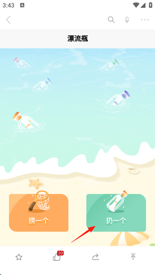 3、随后点击屏幕的“心情漂流瓶”。
