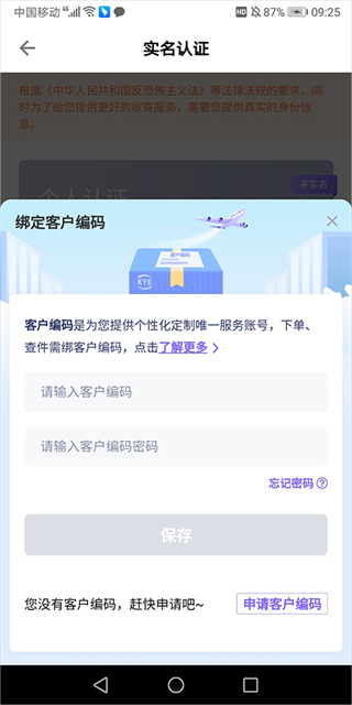 3、这里以个人认证方式为例,此时会要求用户申请客户编码,用户点击申请即可