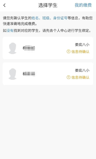 2、选择需要缴费的学生