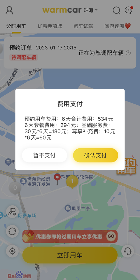 缴纳方式:用户需在注册认证(上传身份证、驾驶证)并通过审核后,通过APP缴纳该笔费用方可租车。