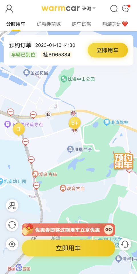 在取车时间前工作人员会将车辆送达至预约网点页面状态更新为立即用车此时可以查看车辆车牌号信息点击上方订单中【立即用车】再点击下方【开始验车】即可开启无忧用车
