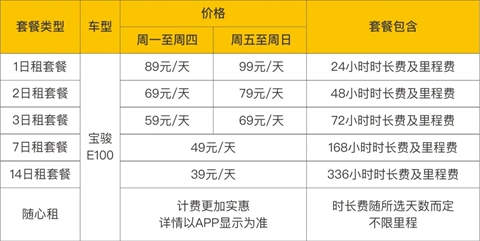 2.以上套餐价格仅包含所选时长及里程费用,超出部分时长按【分时计费规则】计算;