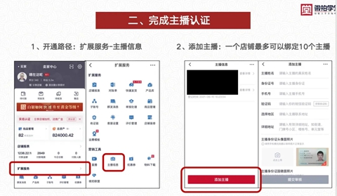 2)完成主播认证——【卖家中心】-【扩展服务】-【主播认证】,上传主播身份证信息审核权限开通+主播认证后,即可开播