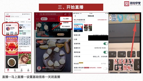开播——【直播频道】-右上角【开始直播】-设置直播封面、标题、选择主播等必选项后可点击【开始直播】关播——开播状态下,直播间右上角【x】按钮关闭下播