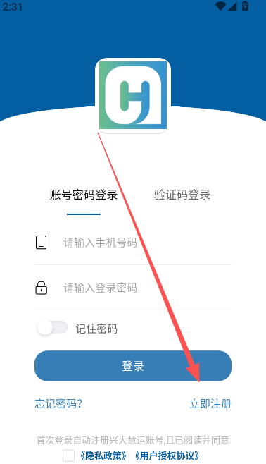 打开慧运通应用程序,输入账号密码或通过其他方式登录您的账户。