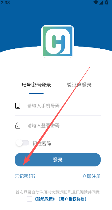 1、在账号密码登录页面这里,点击下方的忘记密码?
