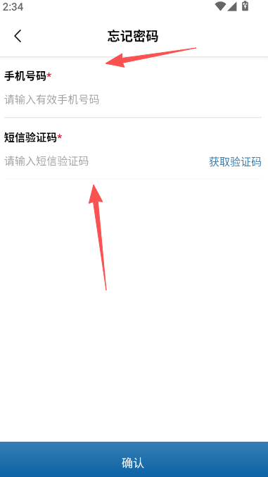 2、输入注册账号时使用的手机号码和短信验证的方式找回密码。