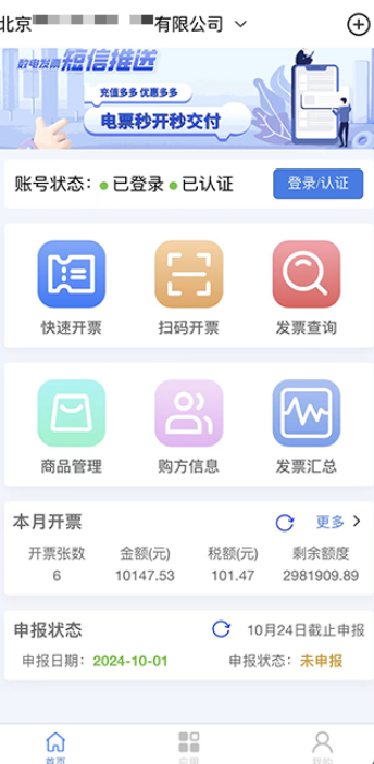 1、首页主要用于展示企业的常用快捷功能、开票信息及申报信息等,便于开票员了解管理企业信息余额预警信息等,以便用户及时作出合理规划。