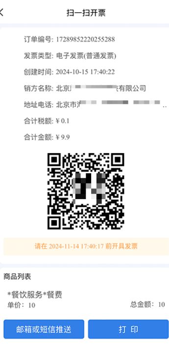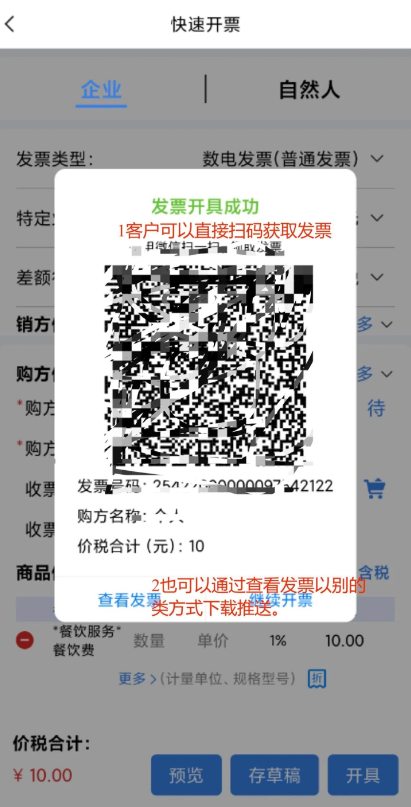 4.开具完成后可以直接让客户扫码获取发票,或者点击查看发票