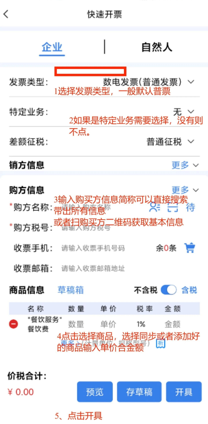 3、进入开票页面,一般普票不需要做任何选择,除非开其他类型发票。输入购买方简称,自动检索所有信息,或者扫顾客二维码获取购买方信息。也可以让客户扫二维码待开里面获取发票。