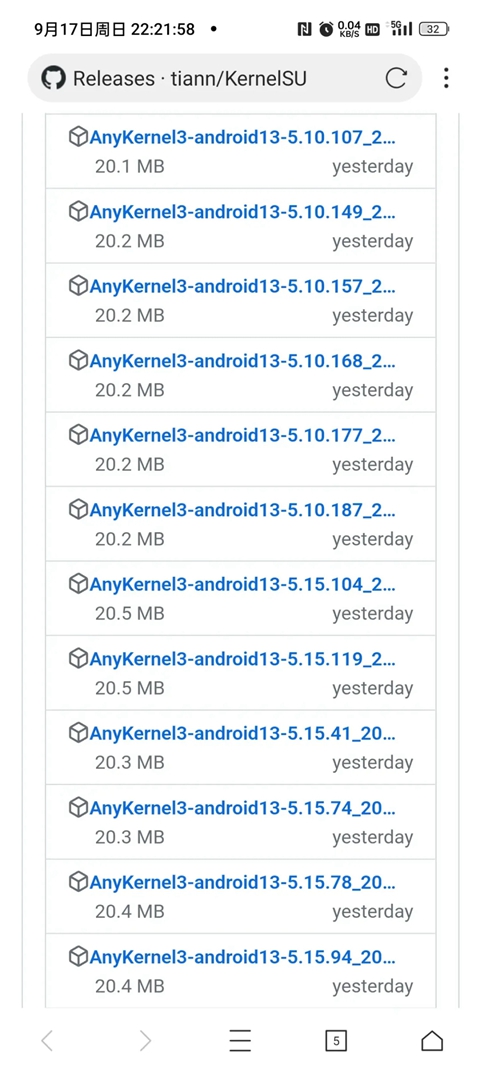 1、首先在github上下载和你设备内核版本一致的AnyKernel3包。比如小米14Pro的内核版本是6.1.25-android14,这里下载一样的版本,名字前面带AnyKernel3的