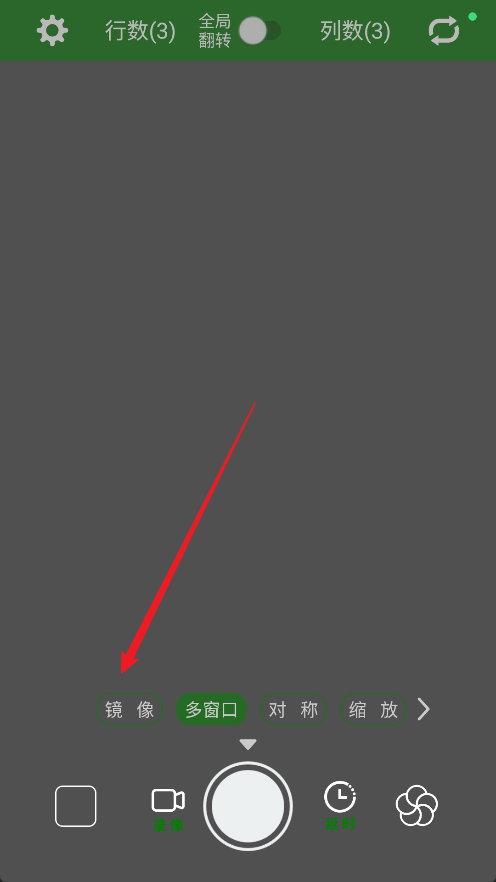 4、返回拍摄界面后,再点击屏幕上的“镜像”按钮,镜像模式就会正式生效。