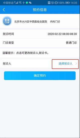 维护好家人信息后,在选择完医院科室号源时: