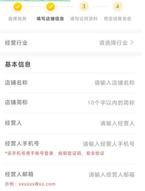点击【新店入驻】或继续编辑草稿箱,按提示上传已准备的图片资料等待审核资料提交后,平台将尽快完成审核。注意商家入驻不需要任何费用