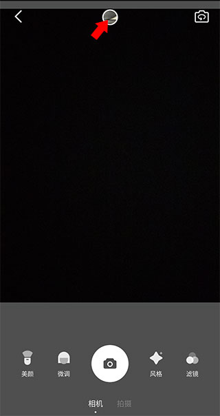 2、选择相机后即可进入美颜相机界面,上方为相机选景框,选景框下方则是各个美颜滤镜功能,大家可根据需要使用。