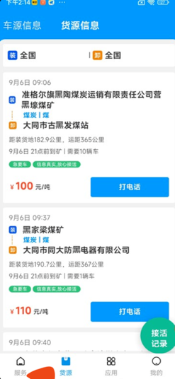 1、打开煤易通司机版 APP,点击“货源” 按钮