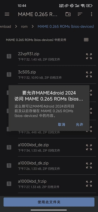 点击“允许”以授予MAME4droid访问该目录的权限。