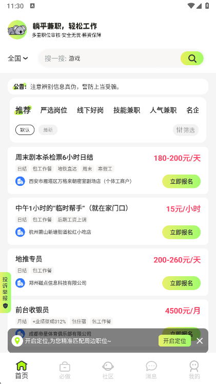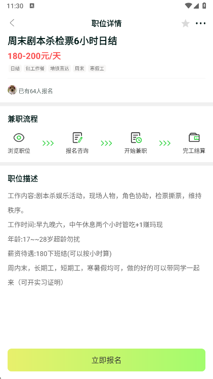 注意:本平台仅支持为18岁以上的用户提供兼职服务,未成年请勿报名。