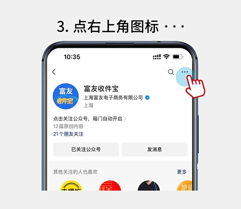 据悉,当前的“服务号消息”功能仍然处于灰度发布阶段,并非所有用户都开放了此功能。若您作为“幸运用户”被抽中开放此功能,正在感觉头疼时,别担心,小编针对以上问题,只需以下几个简单的步骤就就可以把“富友收件宝”从折叠信息中解放出来!置顶【富友收件宝】公众号方法如下: