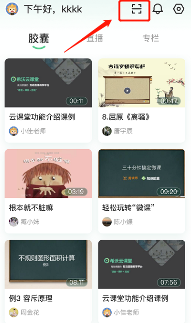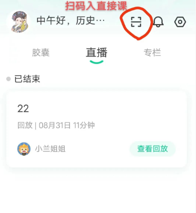 3、进入APP后通过扫码可以进入专门的直播课堂