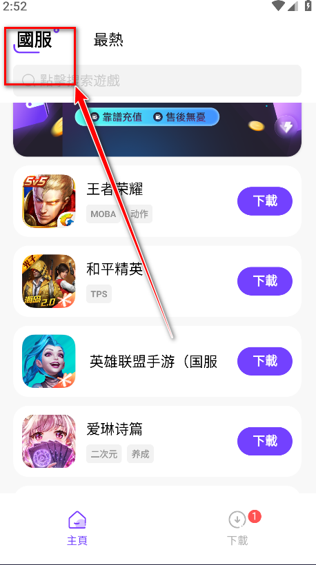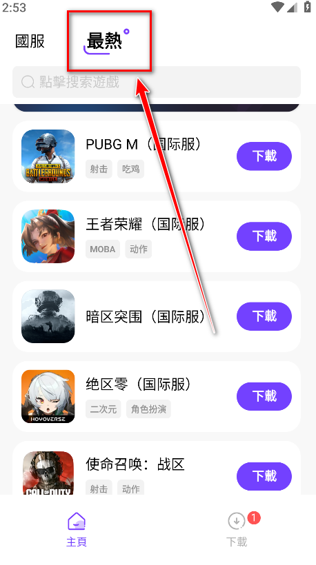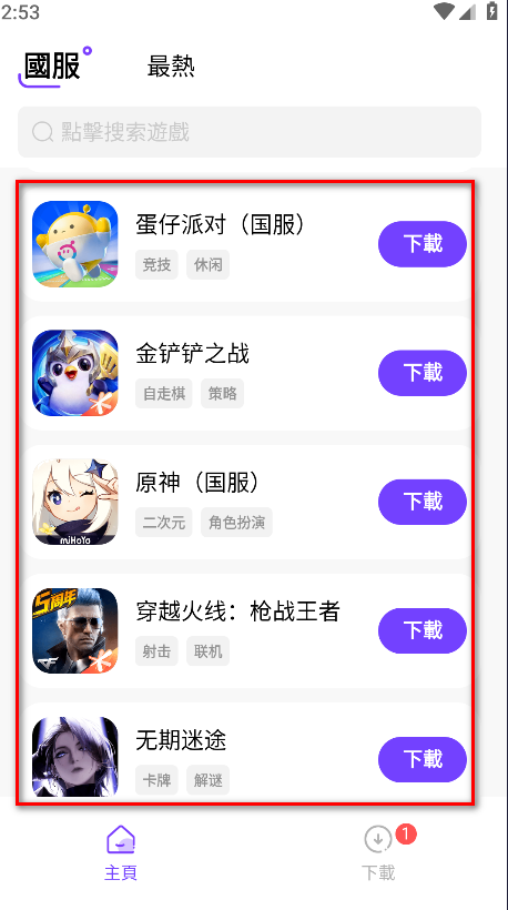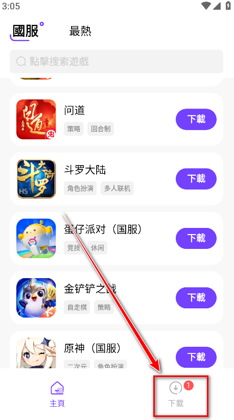 5.输入并搜索我们想要玩的游戏,然后点击游戏后面的下载。