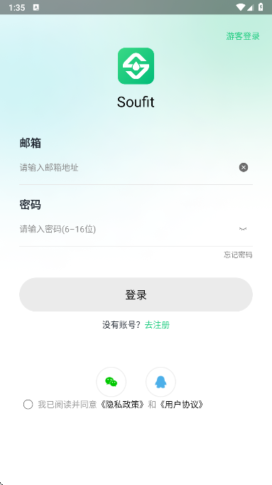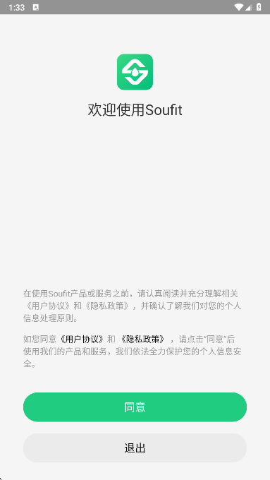 1、在本站下载安装打开,同意Soufit手表app的用户协议