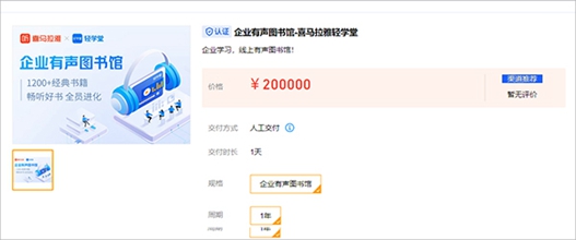 2、企业有声图书馆-喜马拉雅轻学堂:¥200000/年