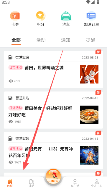 消息分类更清晰,打开消息,获取加油站优惠资讯。