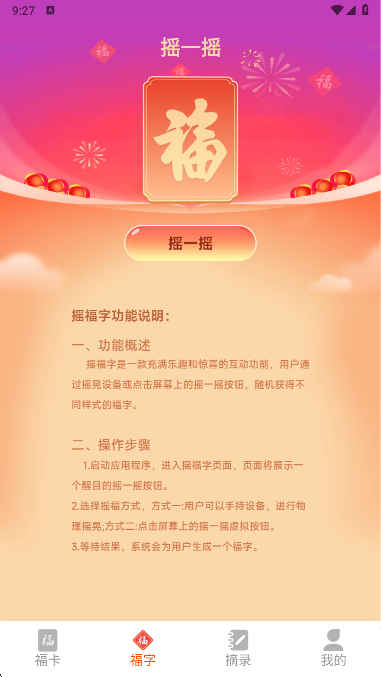 3、在福字页,您还可以摇一摇,获取到不同样式的福字